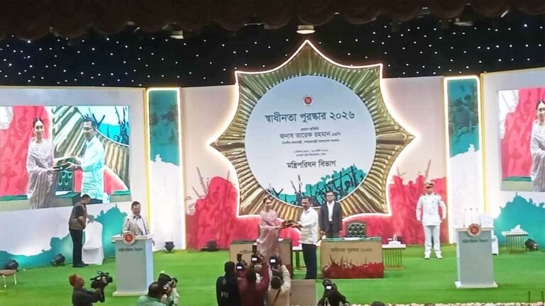 জাতীয় পর্যায়ে গৌরবোজ্জ্বল ও কৃতিত্বপূর্ণ অবদানের স্বীকৃতিস্বরূপ দেশের ১৫ জন বিশিষ্ট ব্যক্তি ও পাঁচ প্রতিষ্ঠানকে ‘স্বাধীনতা পুরস্কার-২০২৬’ পদক তুলে দিয়েছেন...